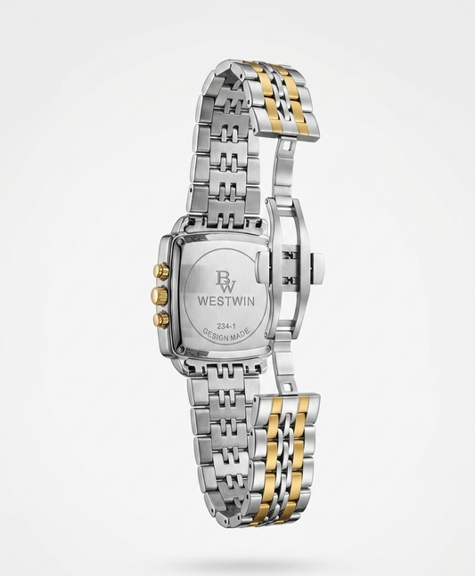 Ankaaara Classic Square Chronograph – Pearl Silver & Gold Two-Tone
