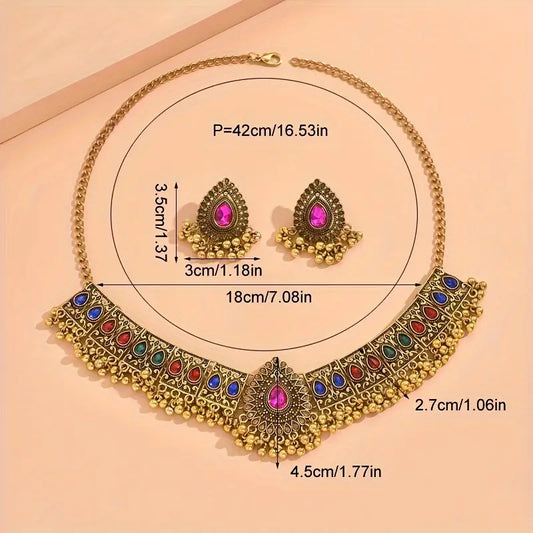 Vintage-Inspired Peacock Jewelry Set with Sparkling Rhinestones - Bold Necklace and Earrings Combo for Women, Perfect for Parties & Gifts