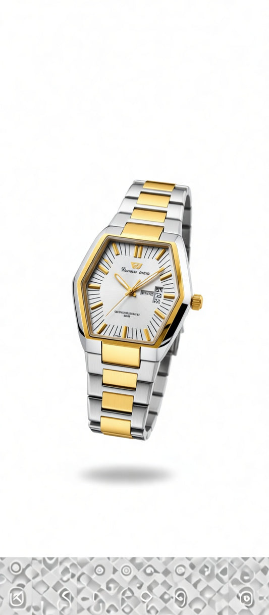 Success Way Azure: Gold & Steel Hexagonal Luxury Watch