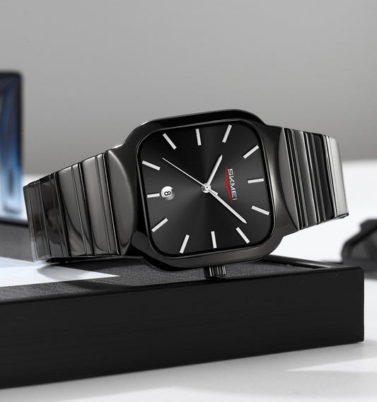 PREIMUIM!!! Black Aankaaara's Man Woman Hand Watch Stainless Steel Business Hand Clock Fashion with Date Lady Couple Quartz Watch Luxury Desgin