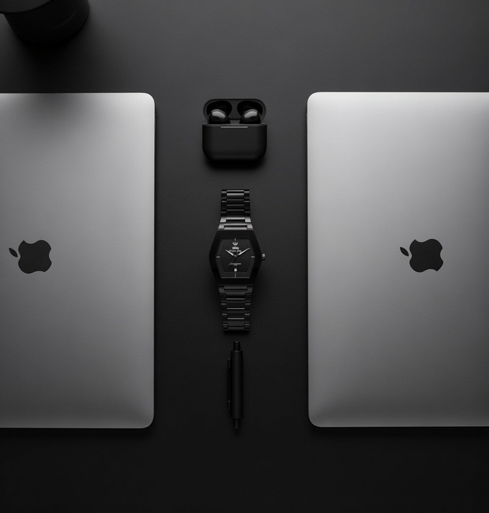 The Midnight Geometric: All-Black Men’s Timepiece